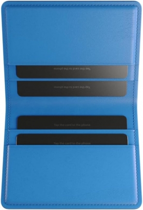 Кожаный держатель карт TWallet Napa, блокировка RFID, черный/синий