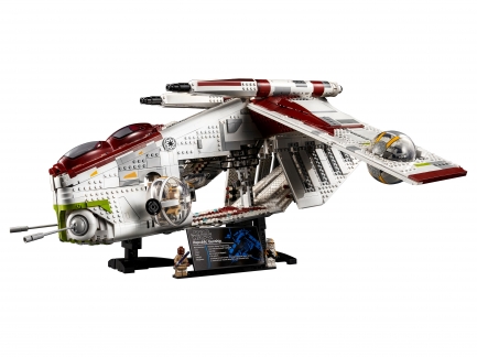 Вспомните битву на Джеонозисе, собирая боевой корабль Республики из сериала «Звездные войны: Войны клонов». Воссоздайте каждую знакомую деталь, от парных кабин пилотов до откидных сферических турелей и тяжелых орудий сверху. Эту модель серии Ultimate Collector вы сможете выставить на подставке с минифигурками LEGO® командира клонов-пехотинцев и Мейса Винду, и она станет впечатляющим украшением интерьера.