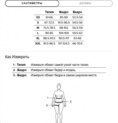 - Бедро / обхват ягодиц: 86.5 – 91.5 см (измеряется по наиболее выступающим точкам).