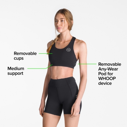 Тренировочный спортивный бюстгальтер с входящим в комплект модулем Any-Wear Pod — незаменимая вещь, если вы занимаетесь высокоинтенсивными интервальными тренировками, единоборствами, тяжелой атлетикой, крутите педали велотренажера или просто хотите снять часы WHOOP® с запястья. Благодаря съемным накладкам и дышащей силовой сетке в области спины вам будет комфортно во время любой тренировки.