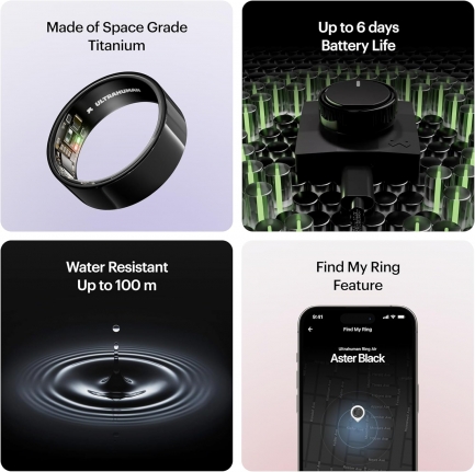 Ultrahuman Ring Air Aster Black работает без абонентской платы и предоставляет полный доступ ко всем функциям через приложение Ultrahuman. Это ваш стильный и технологичный спутник для осознанного контроля здоровья, который органично дополнит любой образ.